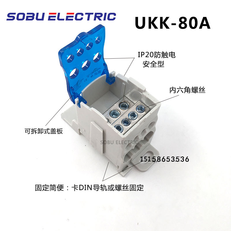 UKK80A rail-type one-in-six-out terminal block branch wire box current connection surface-mounted wire box one point six