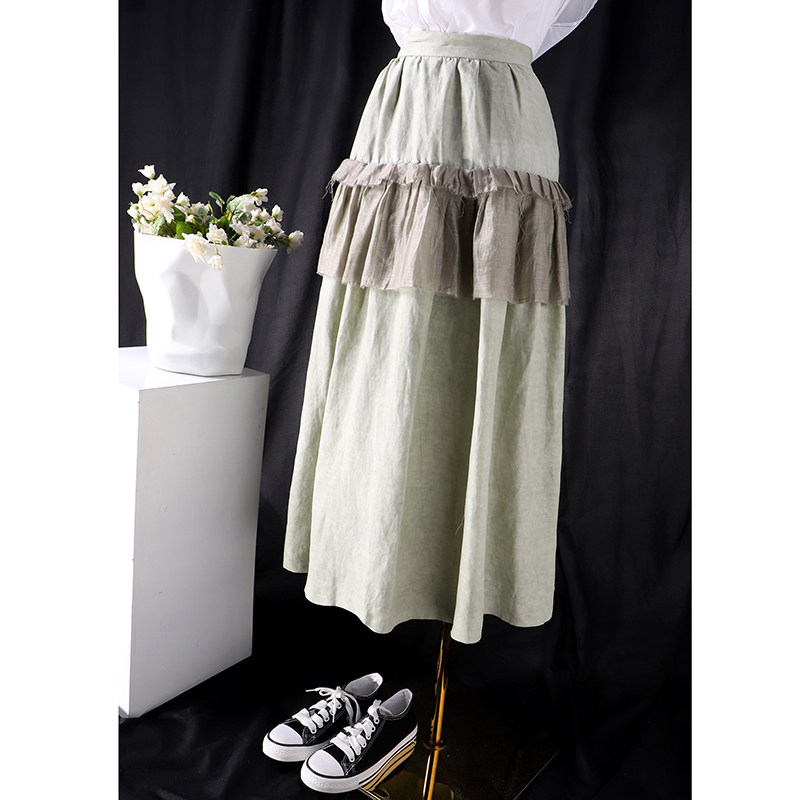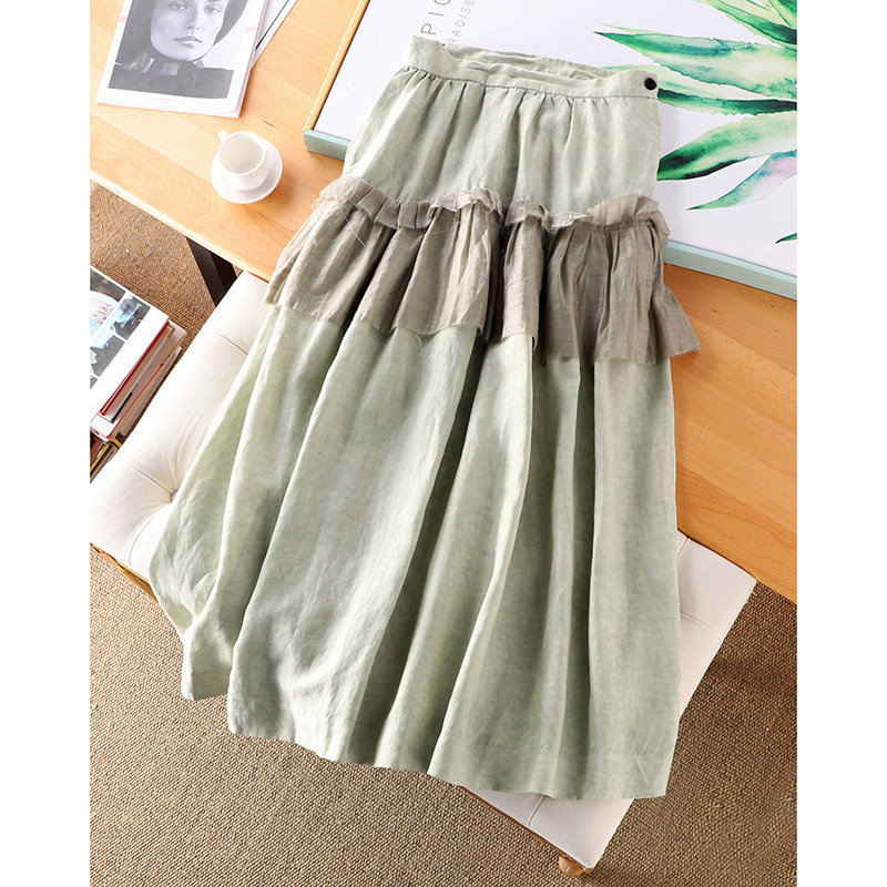 Love this dirty washing process TBV lace folding splicing bronze ammonia woman high waist long half skirt 68176