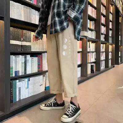 Summer pants men Korean trend ins tooling ankle-length pants men loose Tide brand Hong Kong wind straight casual trousers men