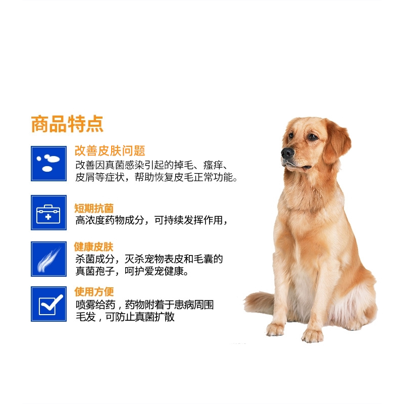 Golden Shield Pitfen Spray Dog Skin Disease Cat Moss External Medicine Pet Fungus Dog Cat Ringworm Medicine Pete Spray