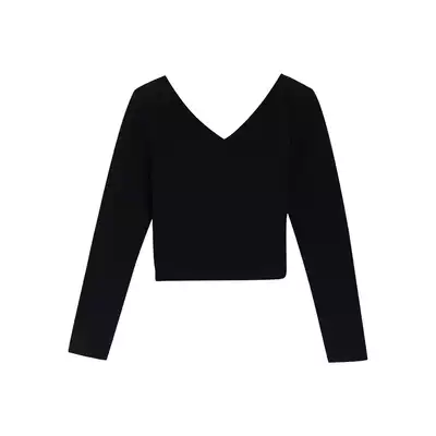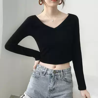 Black T-shirt women's V-neck long-sleeved interior clothing spring and winter short models with cotton Joker low neck tight top