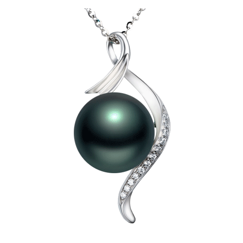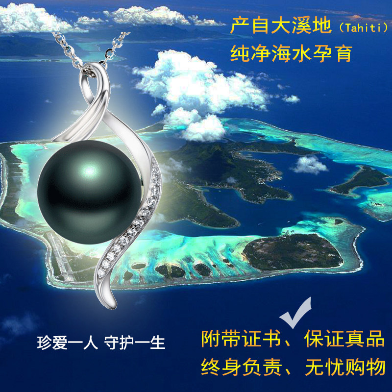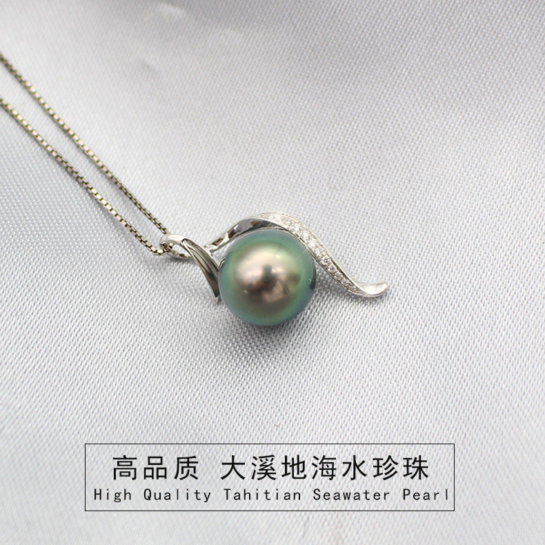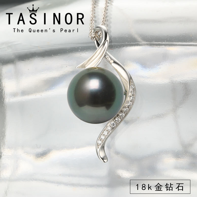 Tahitian black pearl seawater pearl pendant necklace 18k gold inlaid with diamonds is a perfect circle gift for wife and mother