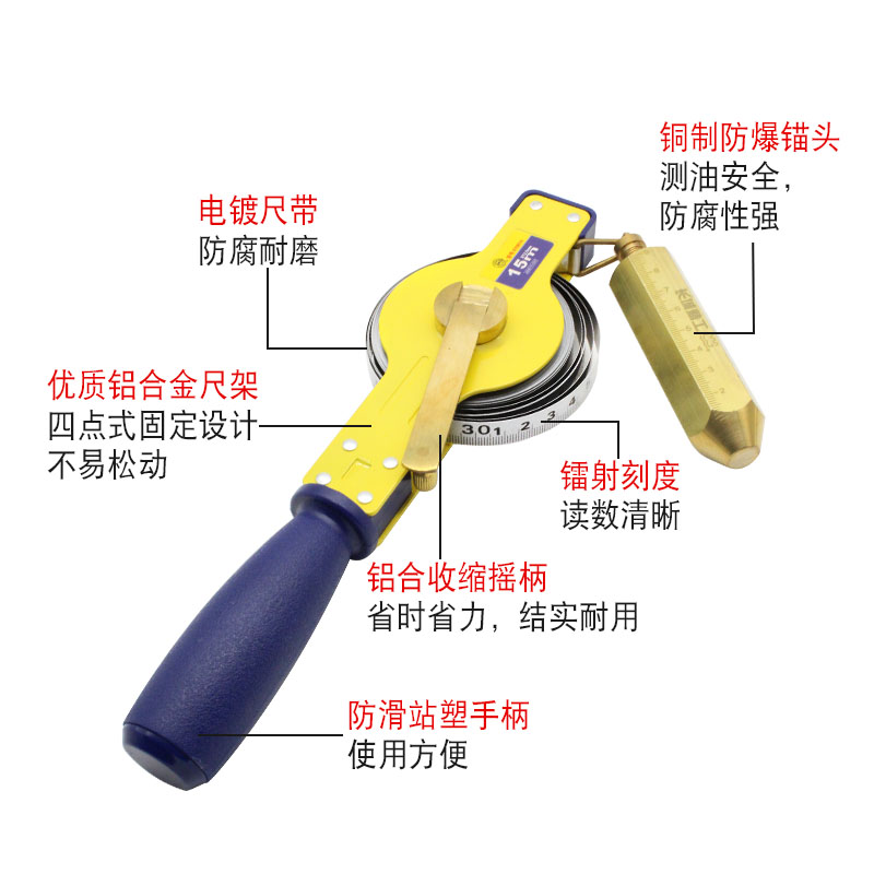 Great Wall Seiko oil dipstick 30 meters Oil bathymetric ruler 20 meters stainless steel copper head carbon steel ruler belt 5 meters 10m15 meters