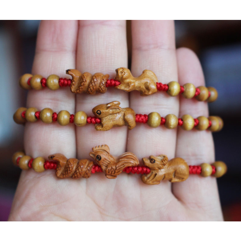 Peach wood carving zodiac hand zodiac pendant zodiac year red rope rat cow tiger rabbit dragon snake horse sheep monkey chicken dog