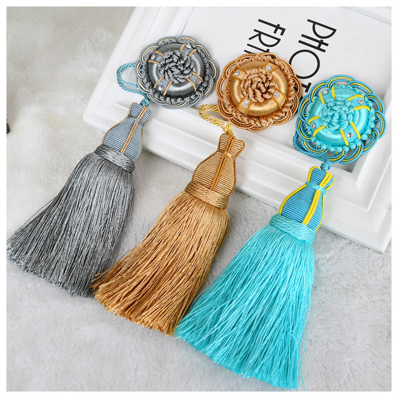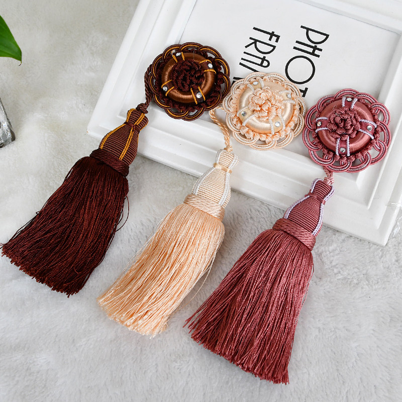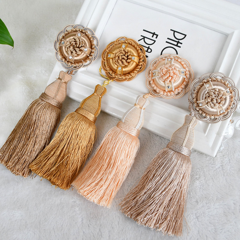 Cotton beauty European-style modern curtains small hanging ears Don't pin a flow Suit full hanging multi-color artificial silk curtains hanging balls