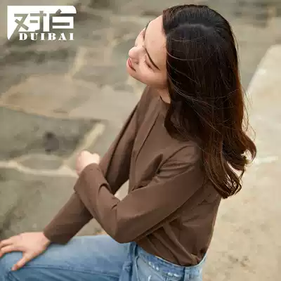 White solid color loose stitching long sleeve T-shirt women's 2021 tide autumn casual simple cotton T-shirt