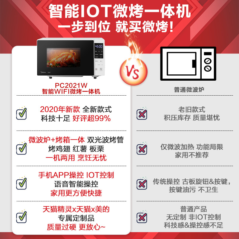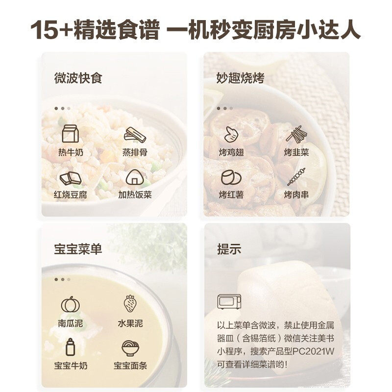 Midea PC2021W microwave oven sterilization home automatic light wave furnace flat panel small smart home appliances