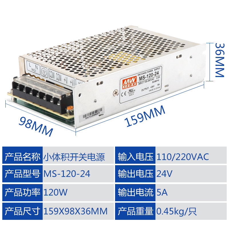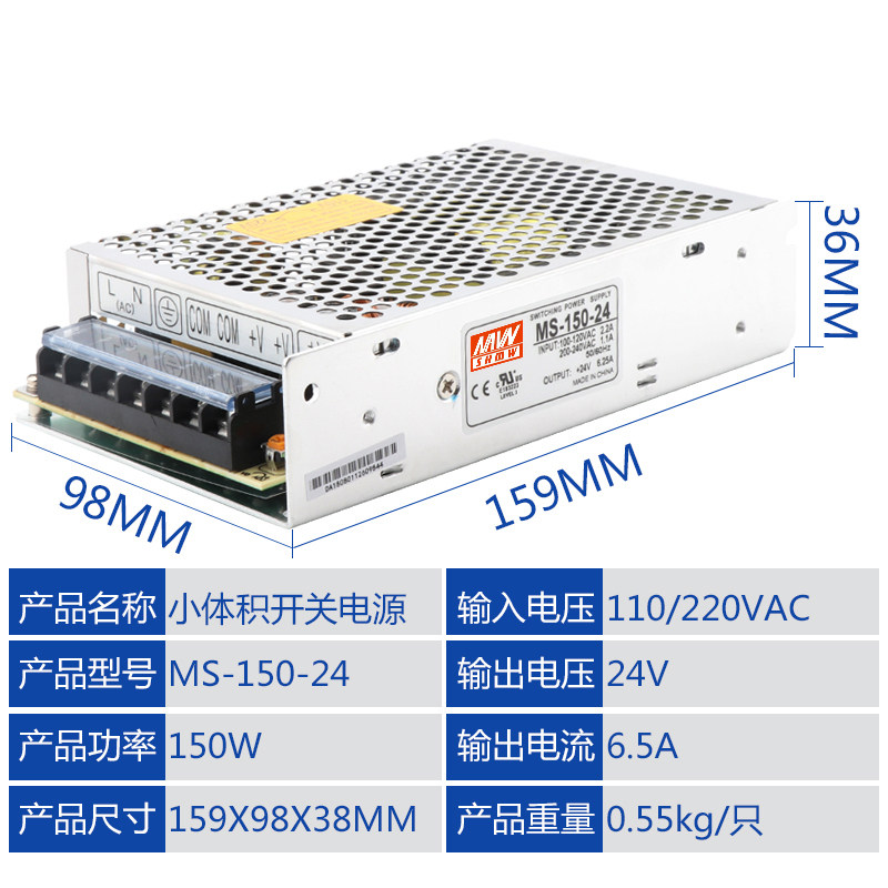 Mingwei small size MS-100W 120W 150W switching power supply single group output 12V24V industrial control LED power supply