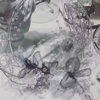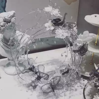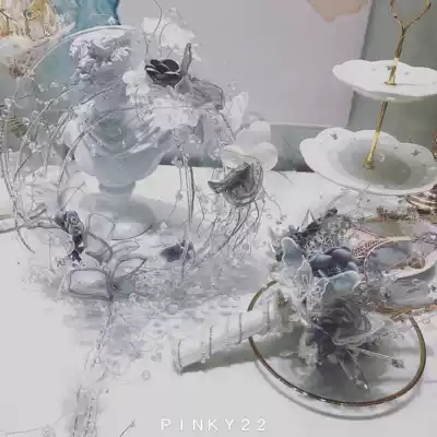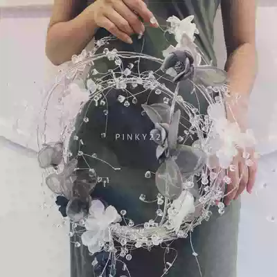 Hand carrying smoke gray transparent crystal feather wreath forever flower diy handmade wedding bride holding flower pinky22
