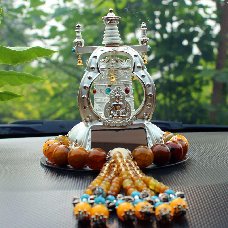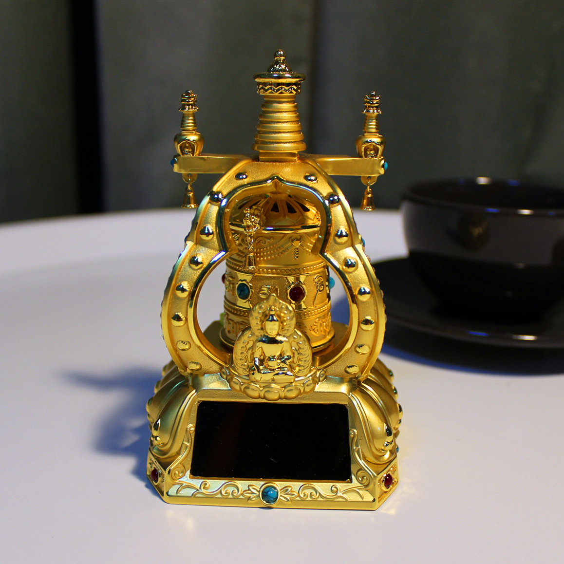 Individually turning prayers in gold, cinnabar beads in gold, Bodhi root beads in gold, tiger-eye beads in gold, dragon-patterned agate beads in gold, and fantasy agate beads in individual prayer wheels, silver, Tibetan silver, and Zhu