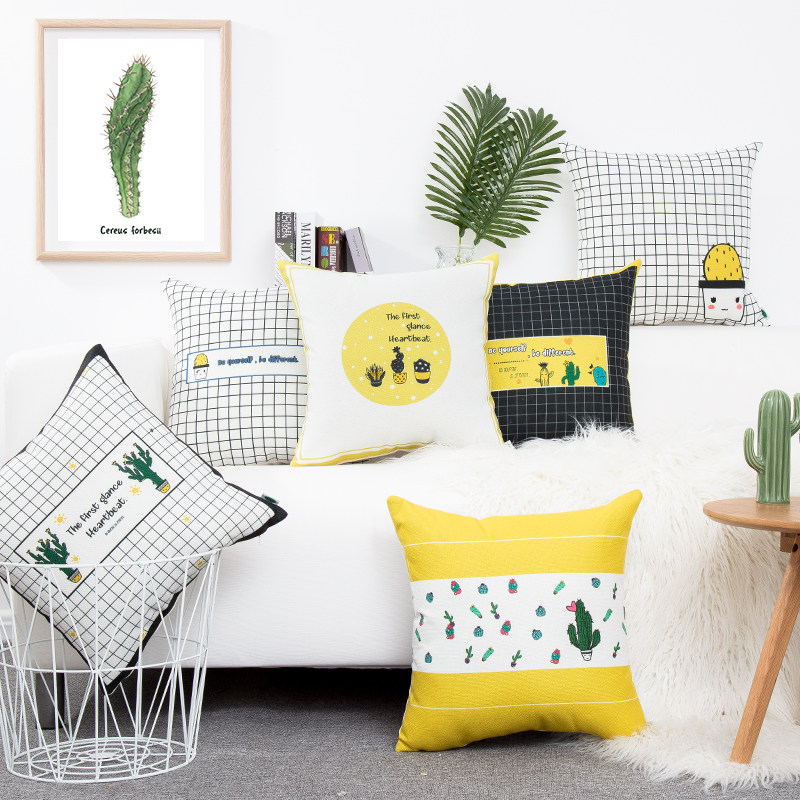 Cactus grain style plate cushion cotton cotton cotton summer sofa pillow bedroom removable pillow sleeve with pillow core