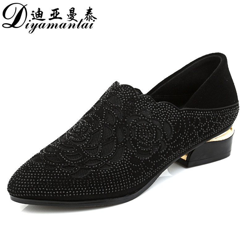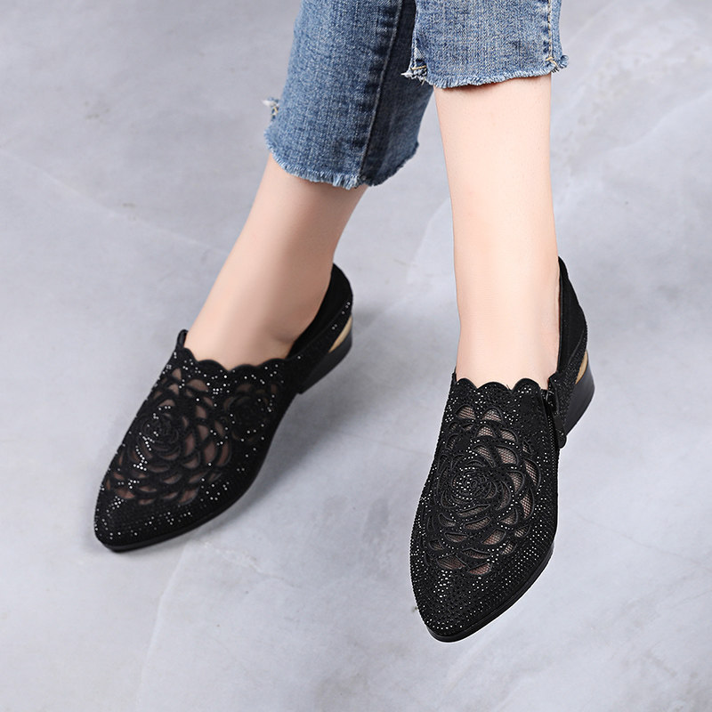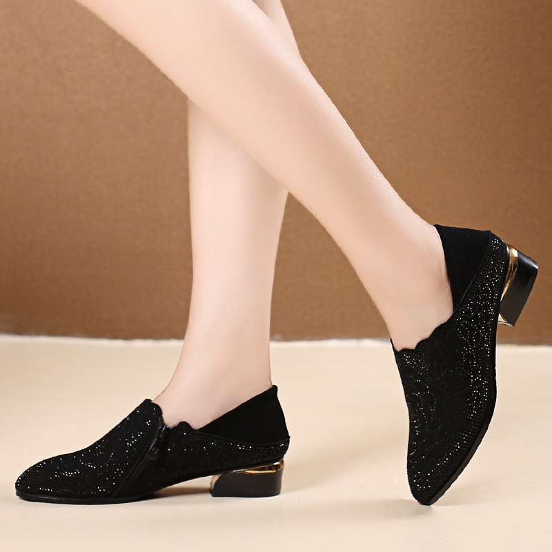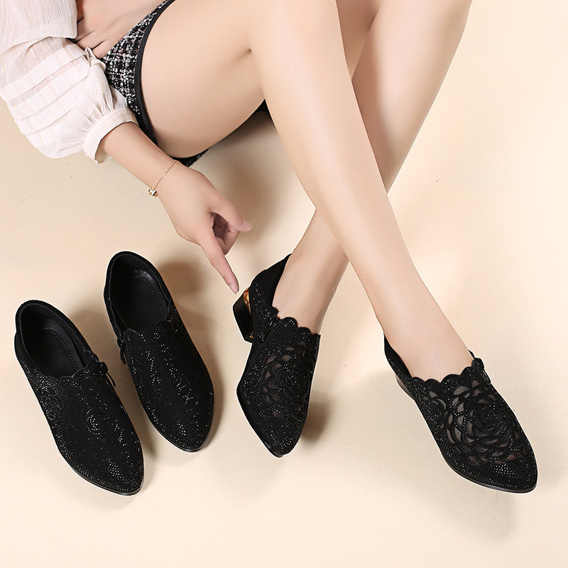 Shoes Children Spring Fall 2020 New Coarse Heel Single Shoes Fashion Deep Mouth Pointed Water Drill Hollowed-out Flat Bottom 100 Hitch Shoes