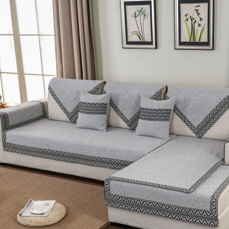Four seasons cotton and linen sofa cushion summer linen cover cloth simple modern universal new Chinese-style solid wood towel cover old coarse cloth