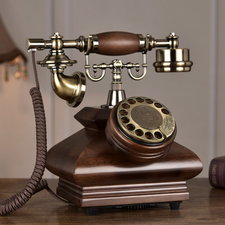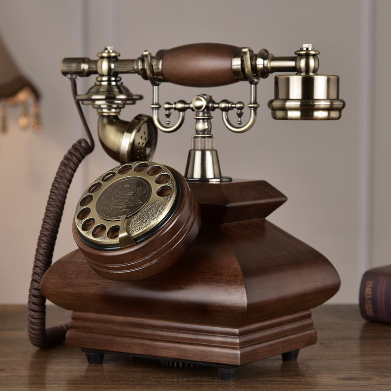 Real wood antique telephone creative old-style rotary turntable European hotel cable landline card telephone