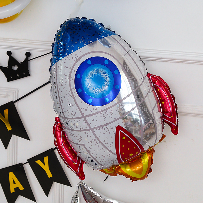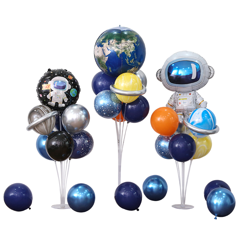 Astronaut aluminum film, one rocket aluminum film, one 18-inch round astronaut, one astronaut table floating A, a set of 4D earth table floating A, a set of space cloud table floating A, a set of astronauts, one pole