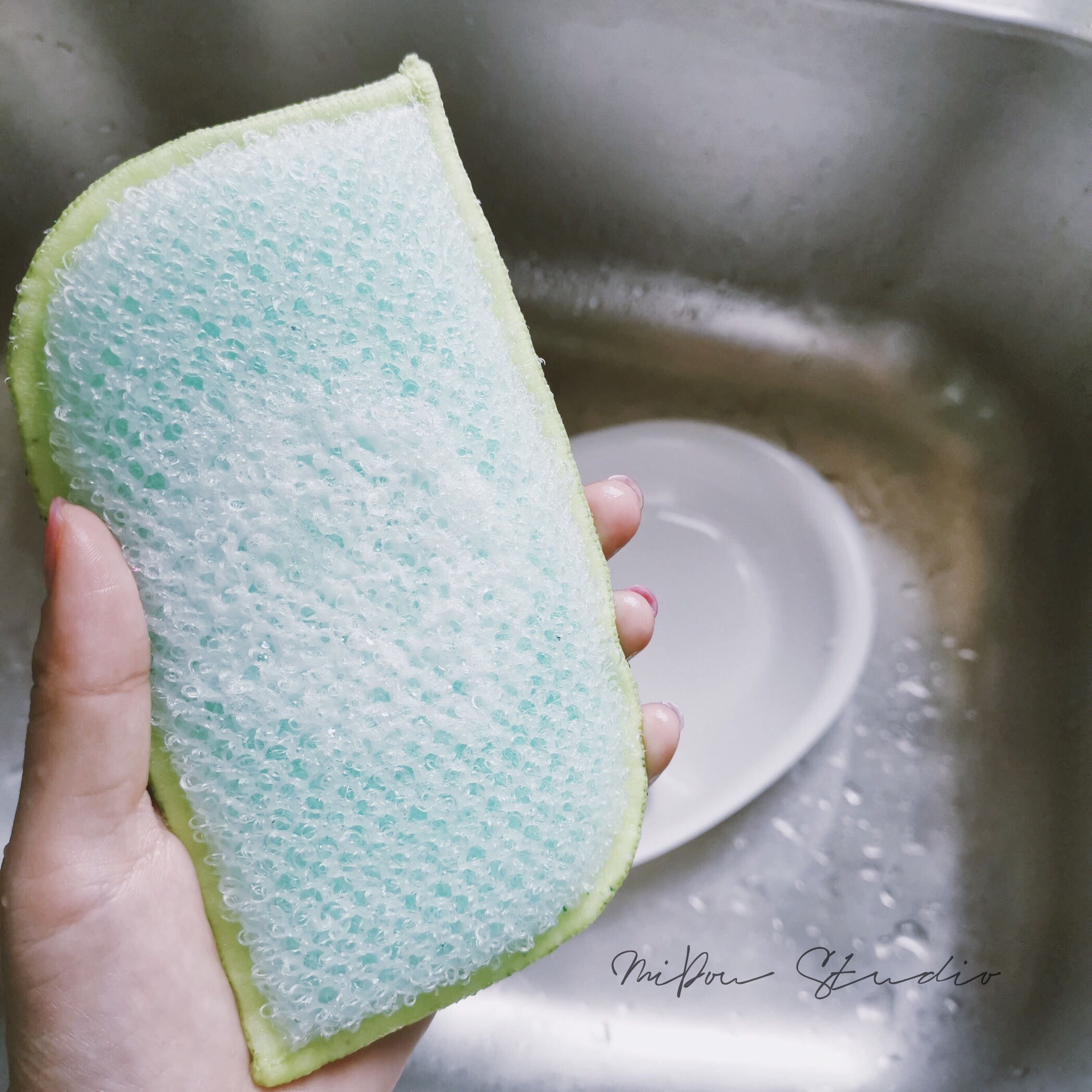 The sponge is rubbed
