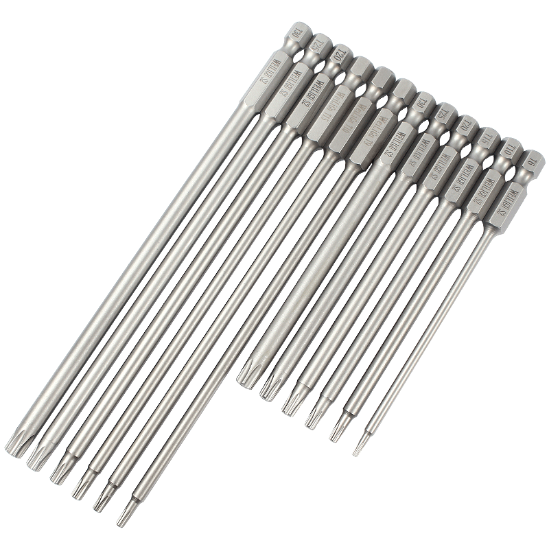 Lengthened pneumatic pneumatic screwdriver head hexagonal flower star plum blossom batch head 100 150mmT5-T40 with middle hole 5-pack