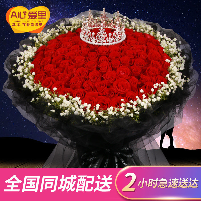 199 red roses bouquet Birthday flowers delivery Same city Beijing Shanghai Guangzhou Shenzhen Xi'an Nanjing Dongguan 9