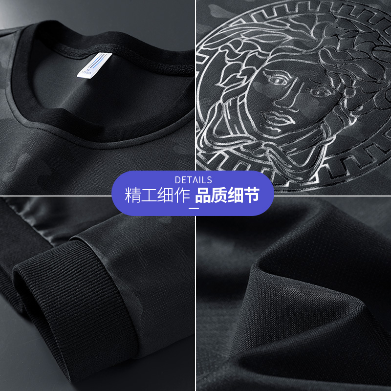 Sweater Suit Men's Spring Autumn Season Fattening Guy Casual Gaffer Increase Code Men's Sports Long Sleeves Two Sets Of Glint Thickened