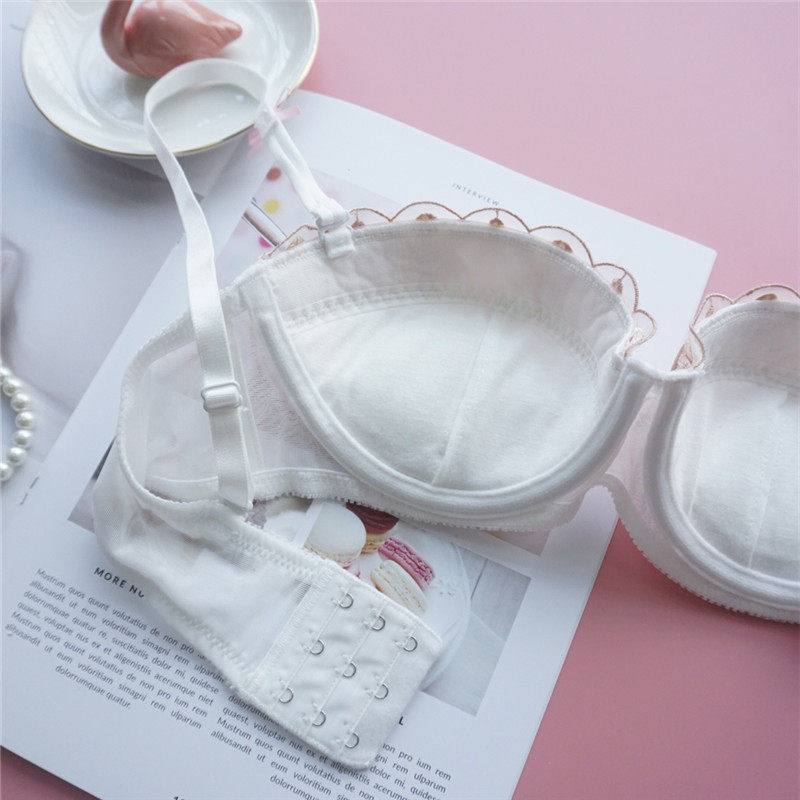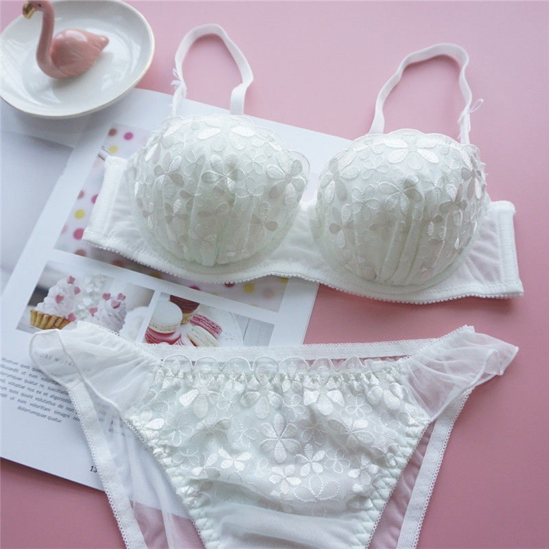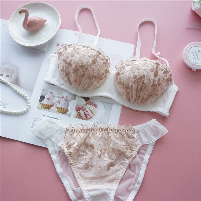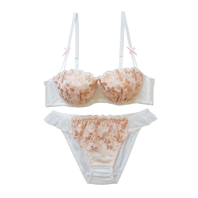 Japan Japanese style one-half upper bracket Sexy embroidery sweet little flower bra set Girl underwear panties