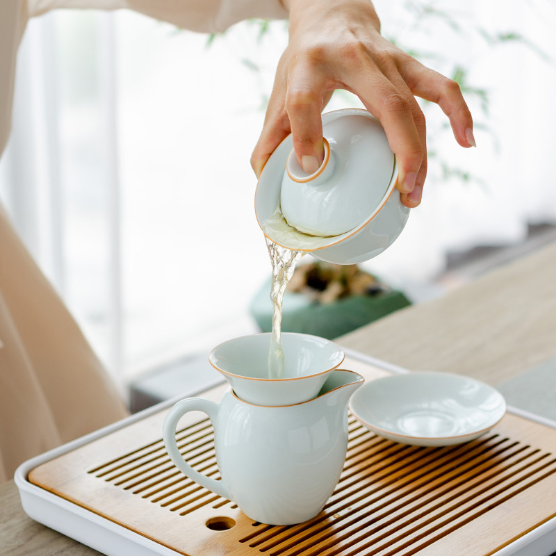 Chenxiang Yingqing Cover Bowl Sancai Bowl Tea Cup Ceramic Kung Fu Tea Set Tea Bowl Cup Large Household Tea Buffer Set