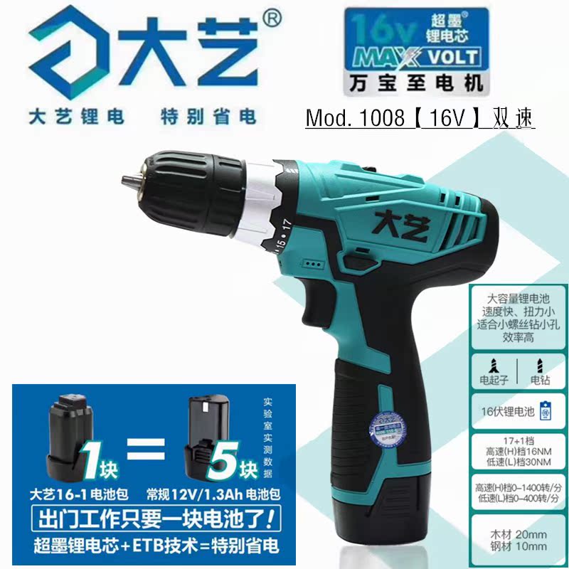 Dayi rechargeable drill 1008 electric drill 12V16V dovetail wire color steel tile twist drill Home decoration lithium electric drill