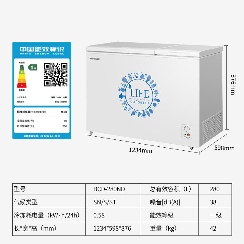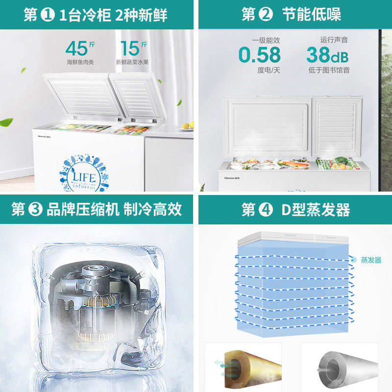 Haixin BCD-280ND Ice cabinet Commercial large capacity refrigerated freezer Home Double warm energy saving special price horizontal