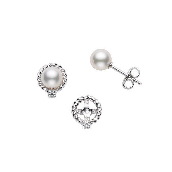 Japan direct delivery MIKIMOTO 18k sea water pearl akoya detachable 2way diamond stud earrings