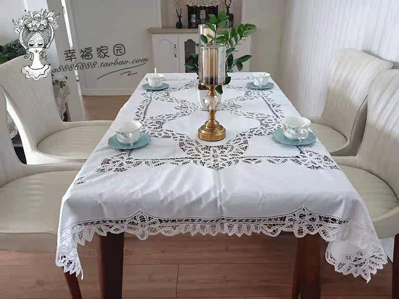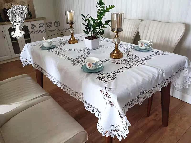Export Europe and the United States white cotton handmade hundred belt Li hollow rectangular tablecloth cover towel Tea table towel special offer