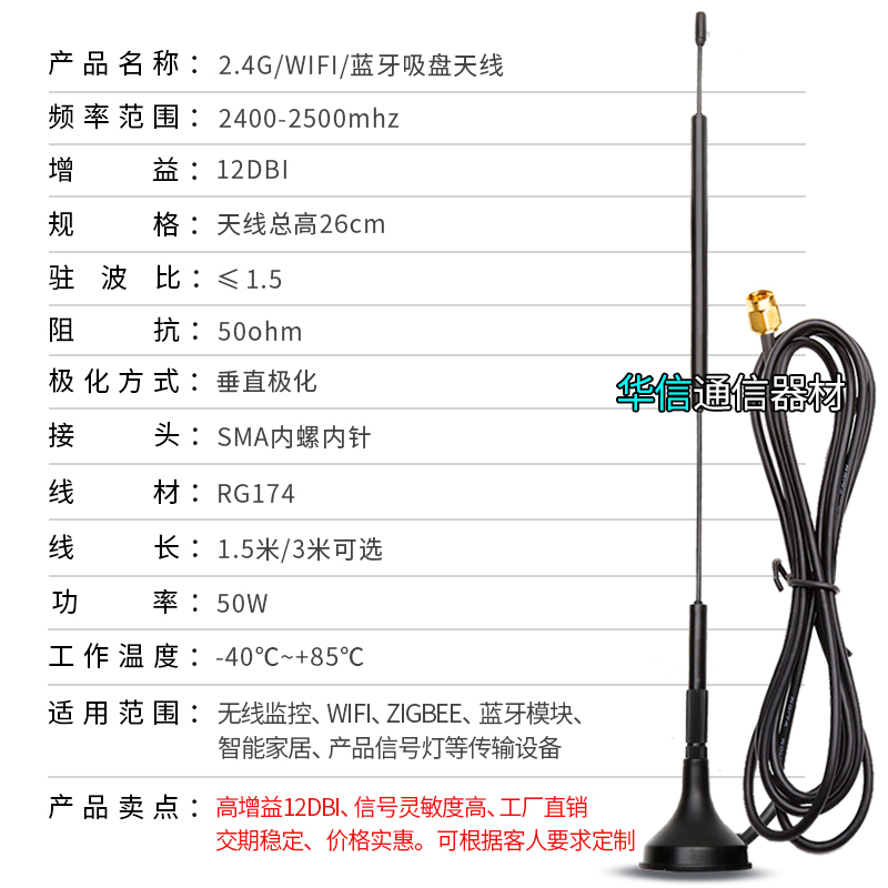 12DB small sucker antenna WiFi Bluetooth data transmission high gain antenna Internet of things antenna 2 4G sucker antenna
