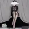 Long-sleeved tearable black stockings top Sexy underwear Transparent hot free temptation sexy open tights women