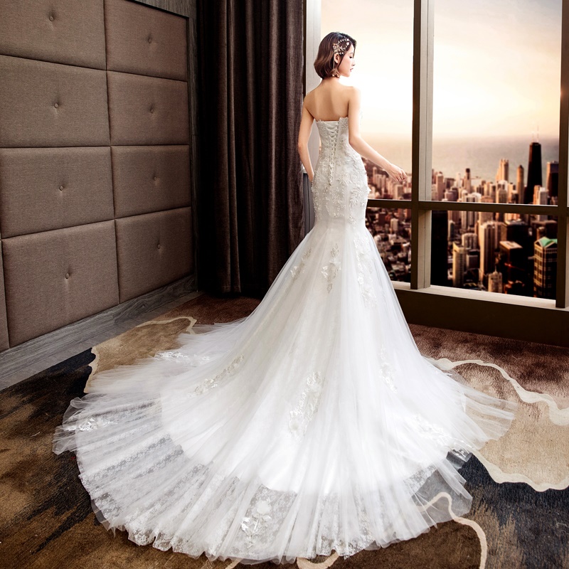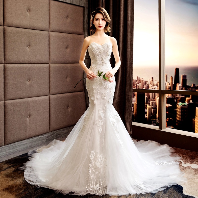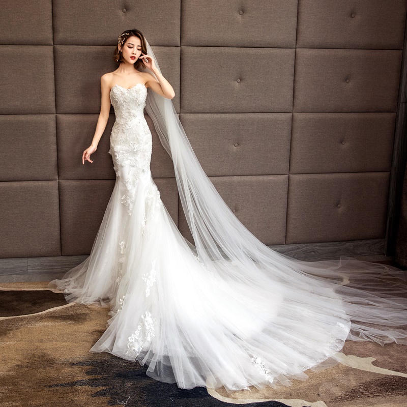 Fishtail wedding dress 2021 new bride forest department super fairy dream skirt Korean flowers French travel simple summer