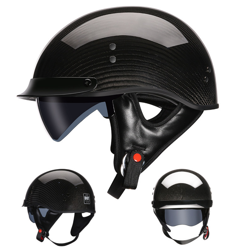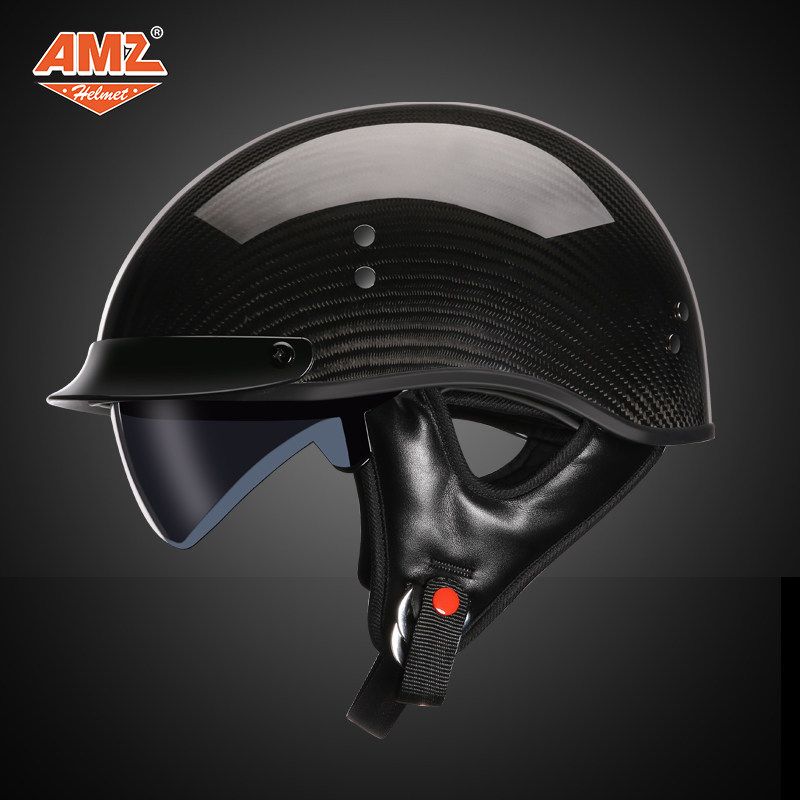 AMZ locomotive retro safety helmet Carbon fiber male and female Harley semi-covered locomotive Summer ladylike light poop half armor
