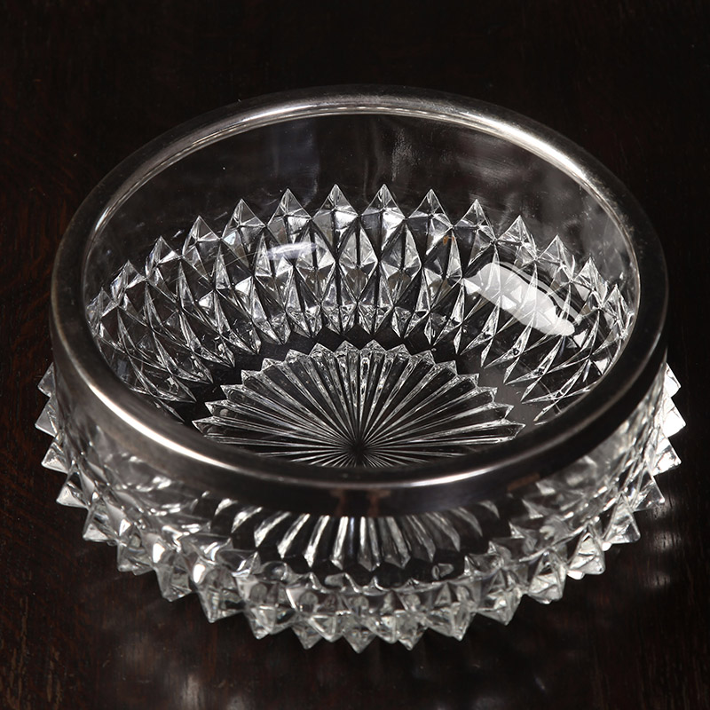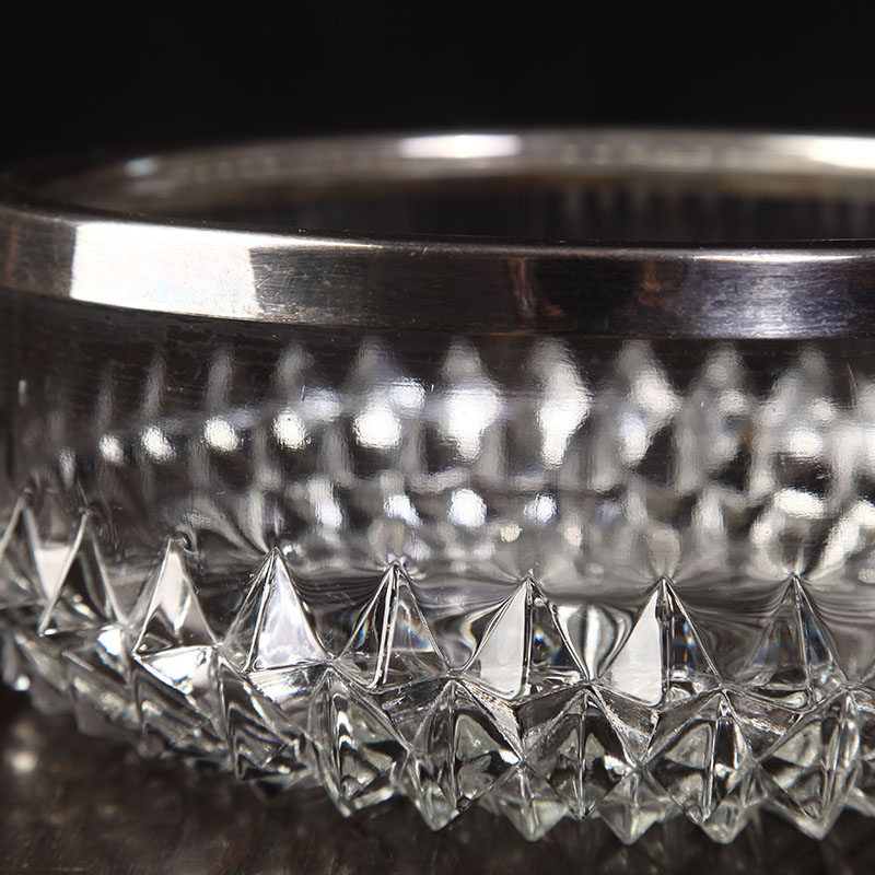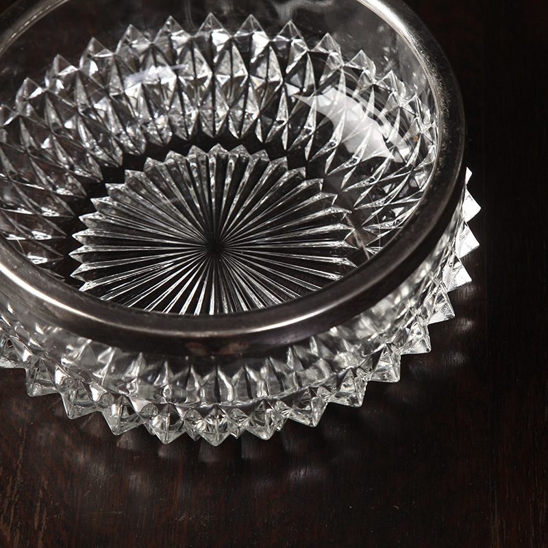 British 50s antique glass bowl EPNS fine silver - plated bezel large fruit disc receiver