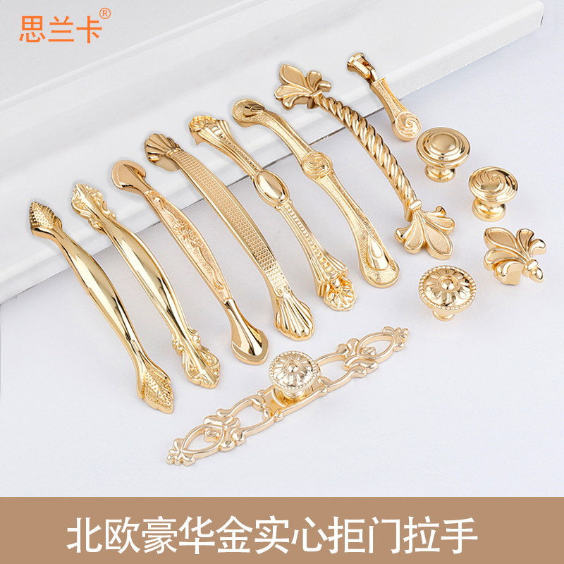 Siranka Nordic golden integral cabinet pull handle modern minimalist American drawers European-style cabinet single-hole wardrobe door handle