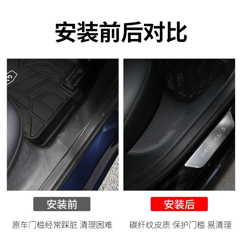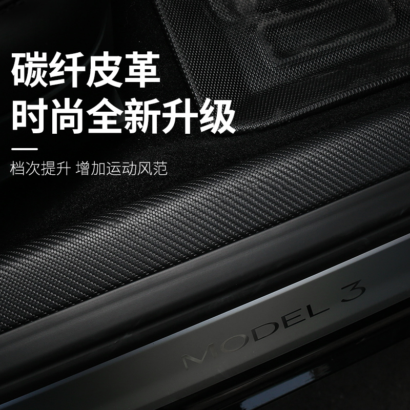 Suitable for 22 Tesla model3 threshold bar Decorative Greeting pedal Sticker Carbon Fiber Retrofit Accessories