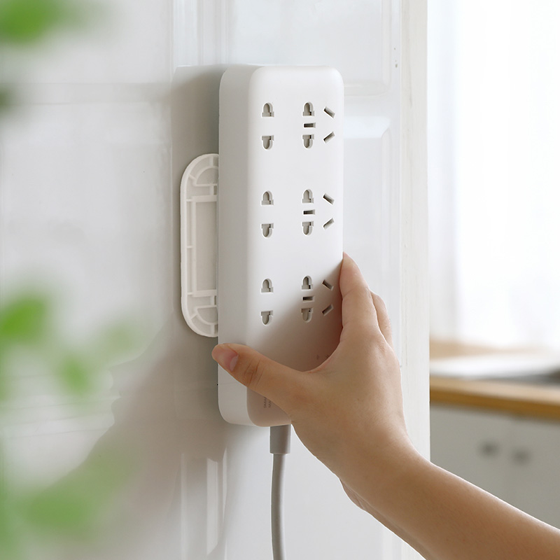 Row plug holder Wall sticker Wall-mounted strong incognito household non-perforated extension cord socket hanging wall adhesive