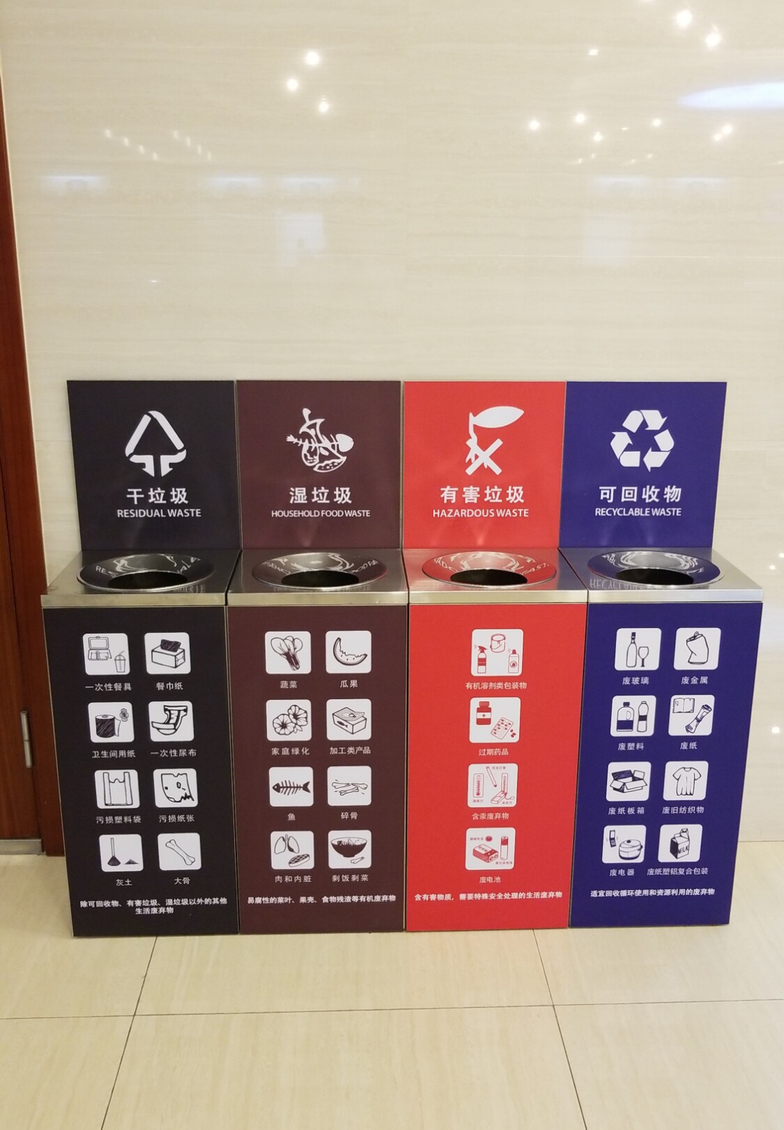 Stainless Steel Environmental Protection Indoor Classification Dry Wet Separation Bin Mall Hotel Subway Station Double Triple Cylinder Dustbin