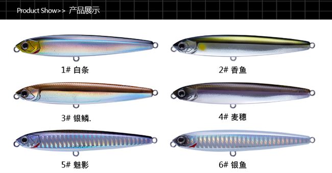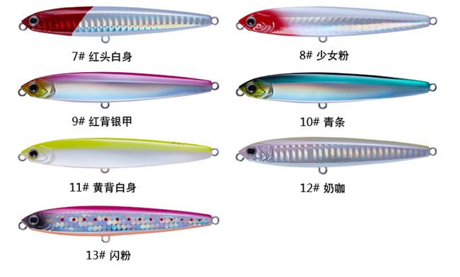 Silver navy blue watermelon red lotus root color bright yellow 1# white strip color 10 grams 1 # white strip color 14 grams 1 # white strip color 18 grams silver sea blue 6 # silver fish color 10 grams 6 # silver fish color 14 grams 6 # silver fish