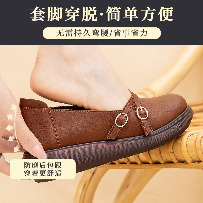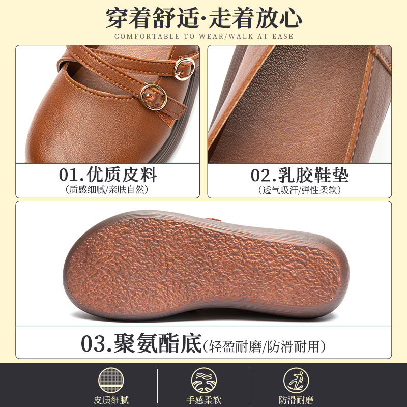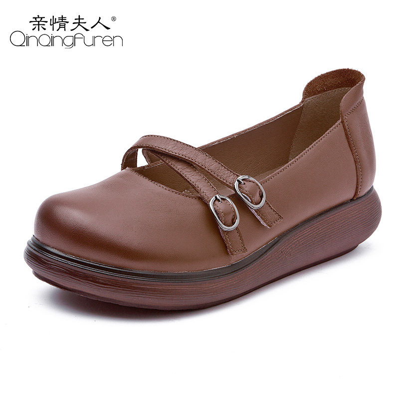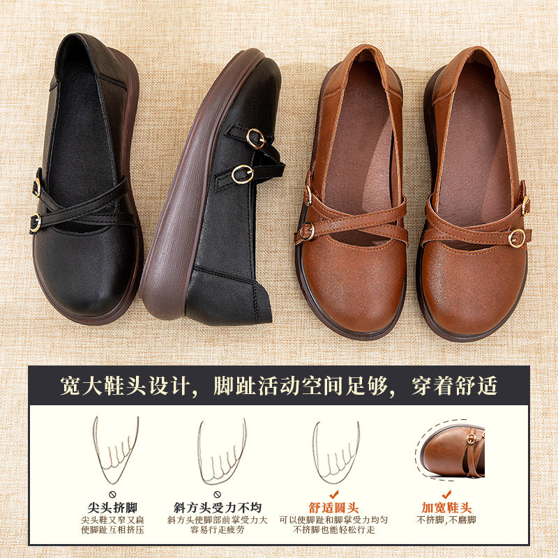 Spring and autumn retro literary mother shoes soft bottom women's comfortable spring new thick bottom leather middle-aged women's single shoes shallow mouth