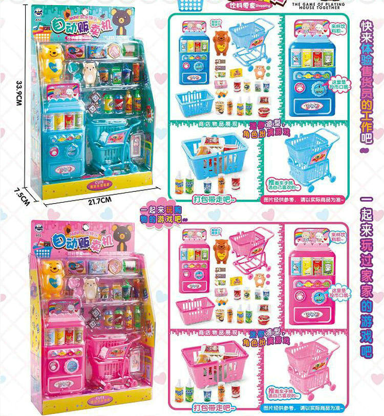 Vending machine A52 simulation shopping cart food play house square stall children's educational toys mixed batch