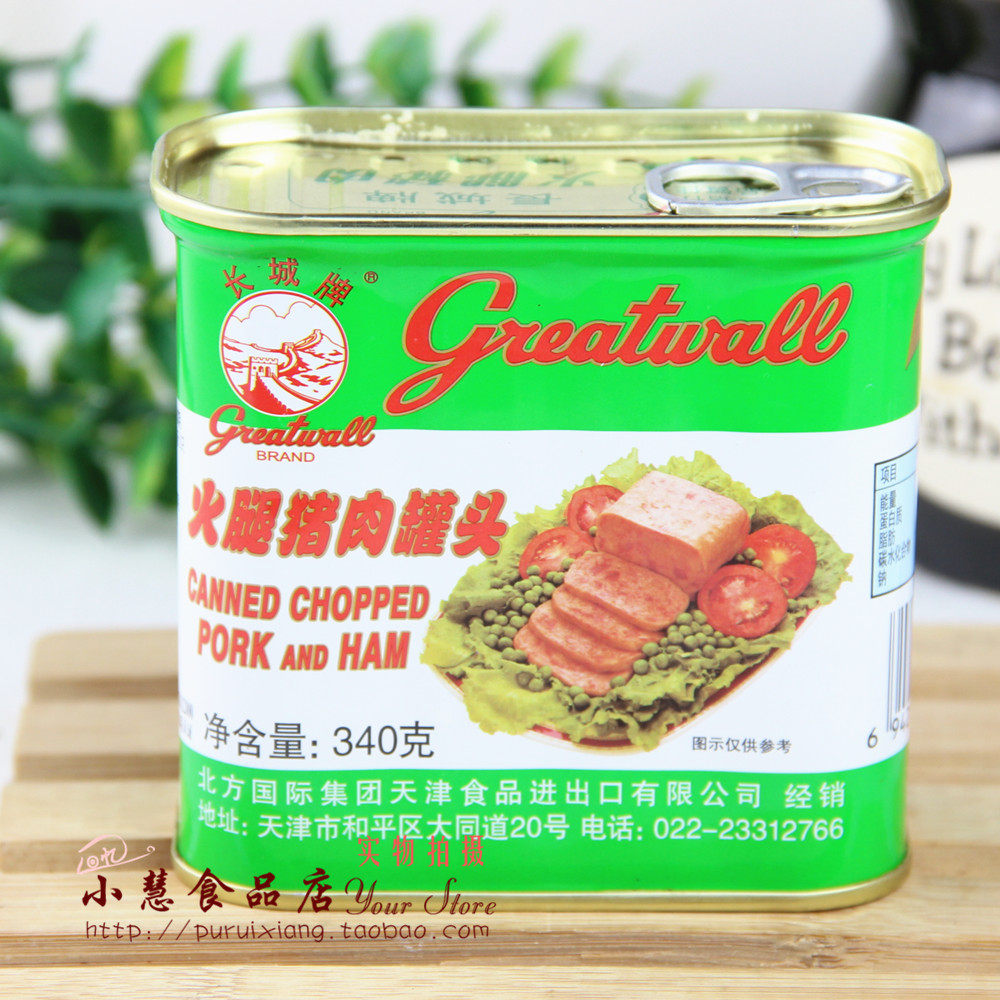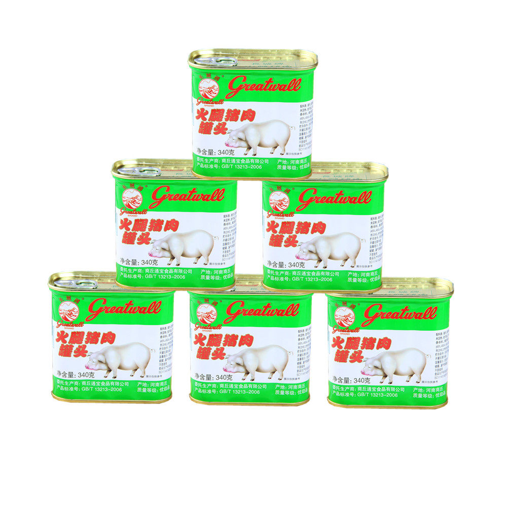 Great Wall brand canned ham and pork 340gX6 cans white pig luncheon meat ready-to-eat rice electric hot pot army canned