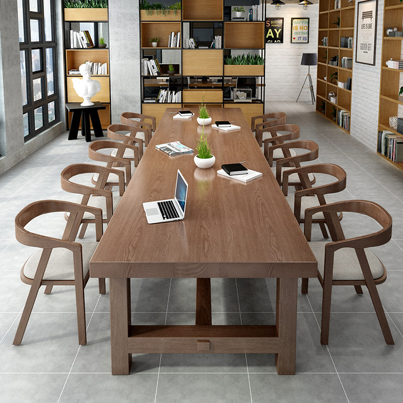 Nordic Solid Wood Meeting Table Long Table Brief Modern Desk Meeting Room Negotiate Table And Chairs Combined Large Table Bench Table
