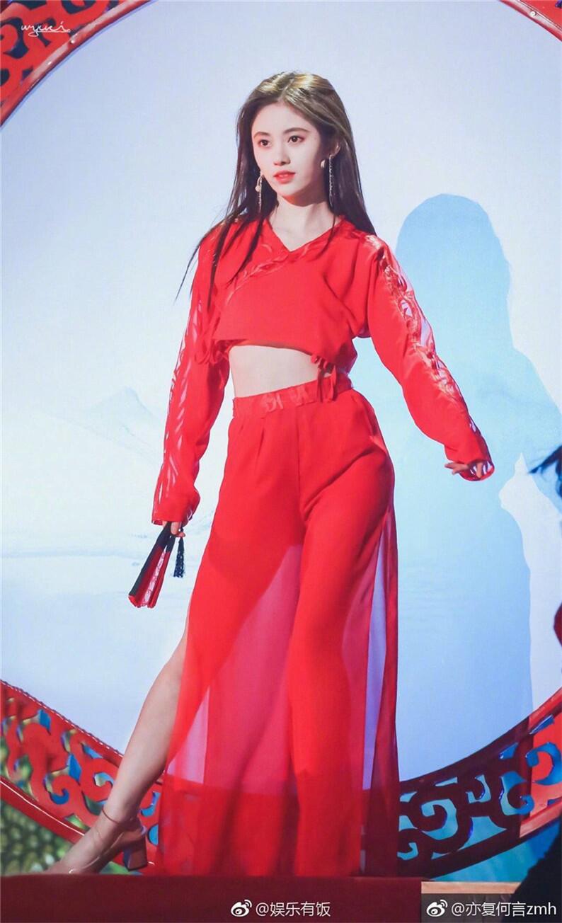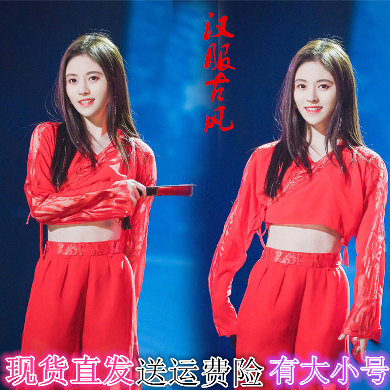 Hong Zhaoyuan dance costume students modern Chinese style Hanfu sexy ethnic red costume fan performance costume