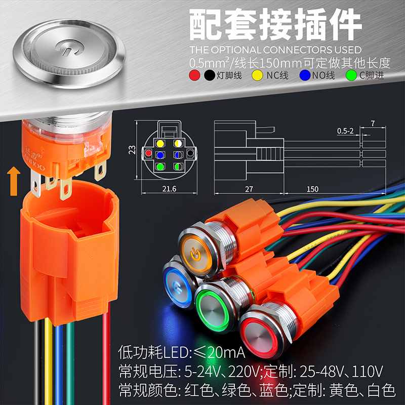 Lamp without lamp 3 lines connector with lamp 5 wire connector ring power mark red self-lock 5-24V ring power Label green self-lock 5-24V ring electric