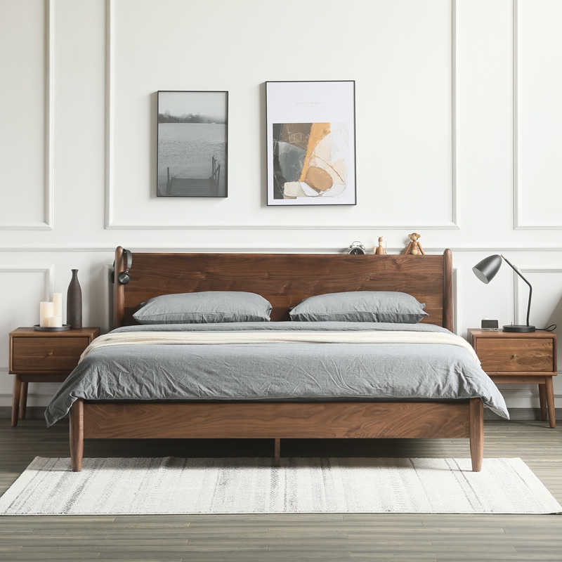 Nordic full solid wood bed modern minimalist wedding bed Black walnuts log bed Japanese style modern simplicity about 1 8 main bed