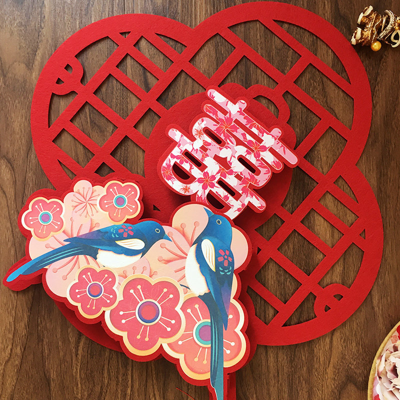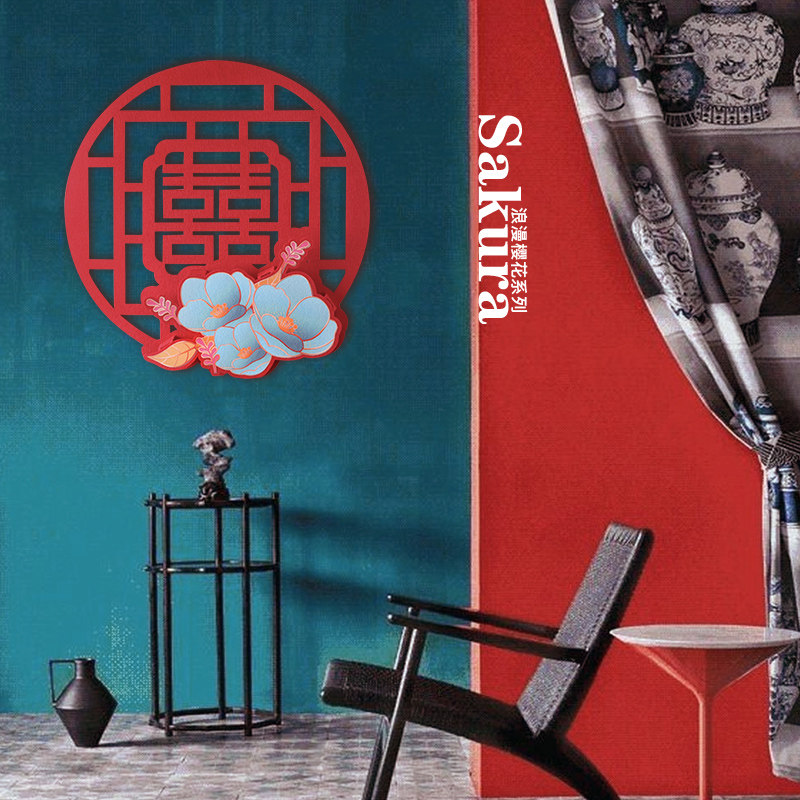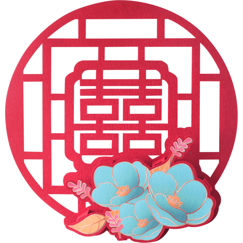 Become Double Paired Wedding Room Unwoven With Solid Joy Character Wedding Romantic Arrangement Decoration Cartoon Cherry Blossom and Festive Letters