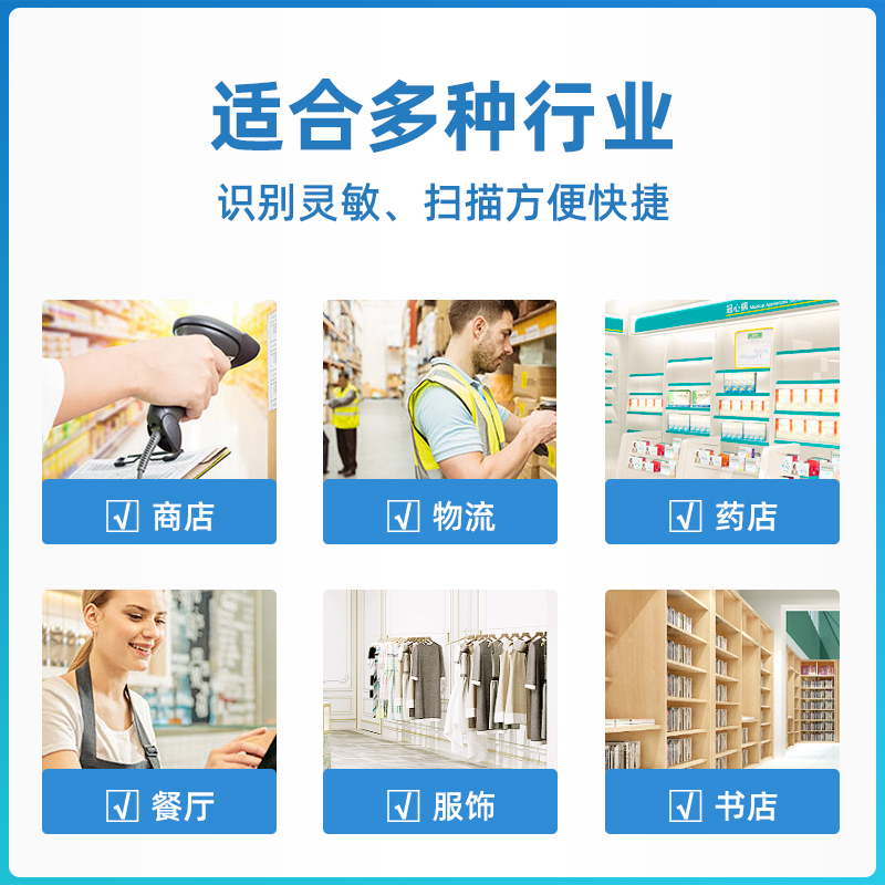 Wired black Scan screen collection code Barcode QR code Wired white Scan screen receipt code Barcode 2D code Wireless black Scan screen payment code Barcode 2D code Wireless white Scan screen collection code Barcode 2Q code Wired black Cash register special drum scanning