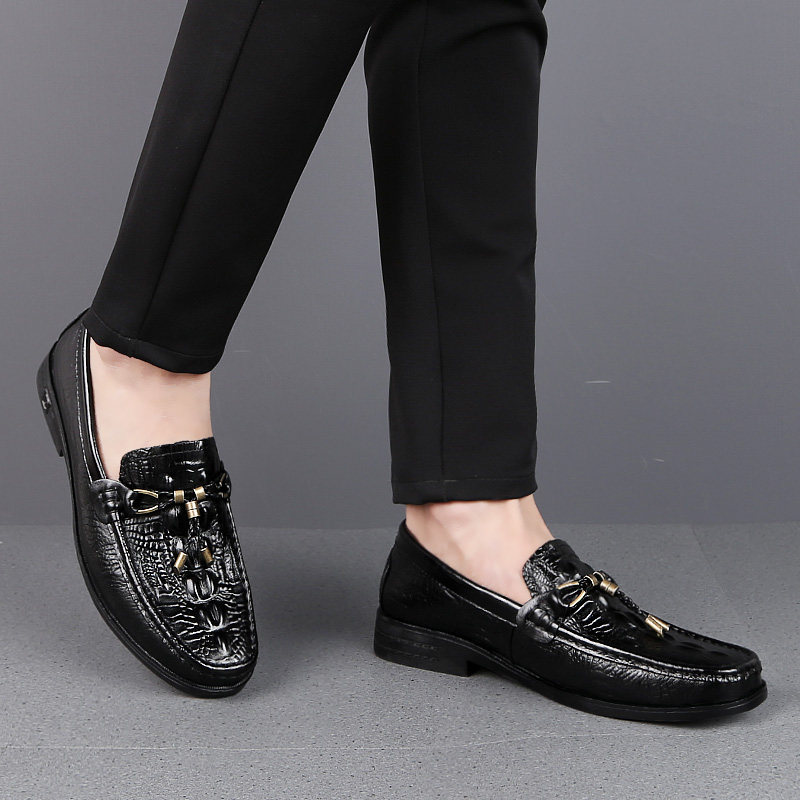 Men's business casual crocodile pattern small size leather shoes men's 37 leather 2022 autumn trend Korean style beanie shoes men's trend