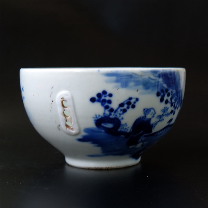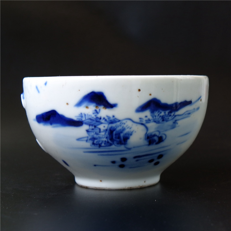 Yan = Ran qing dynasty mid-Qing Dynasty blue and white landscape figure pot change cylinder porcelain ceramic literati porcelain artwork collection